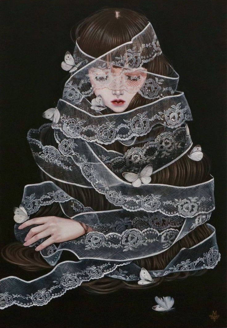 Ooh this is so cool. I especially loved the line "From skin, to bone, to skin", it's so effective and really adds to the imagery of the ribbon being woven throughout her
